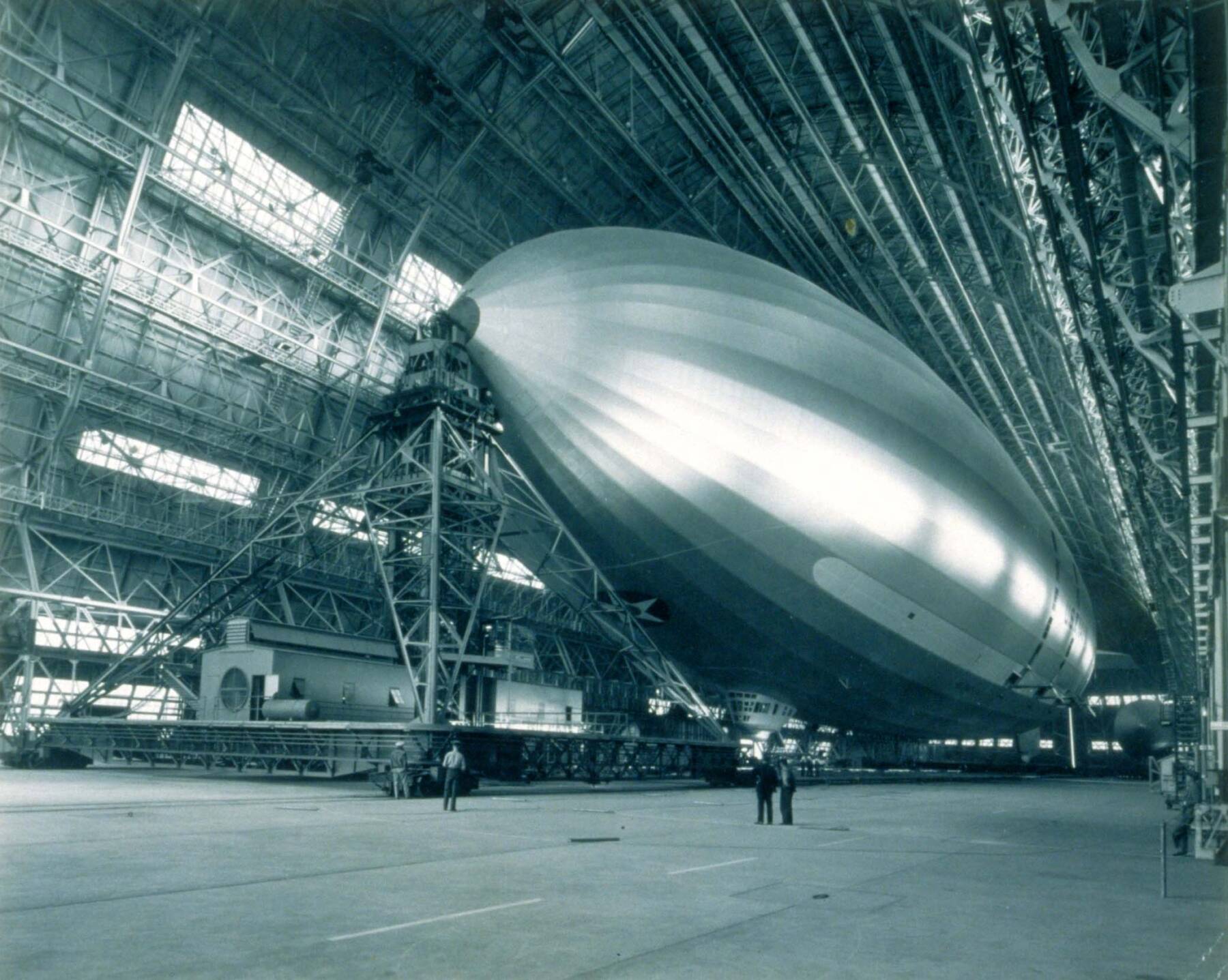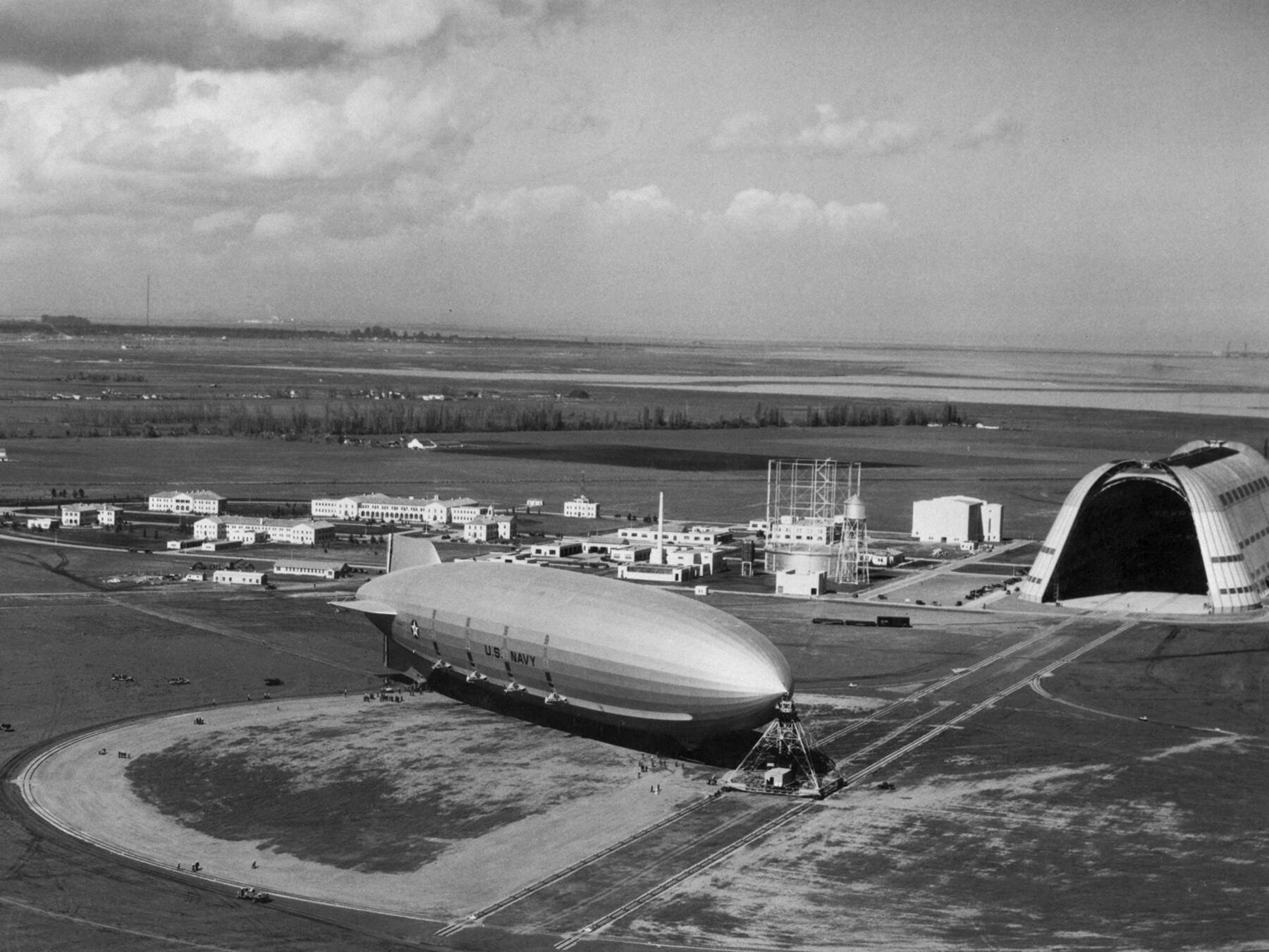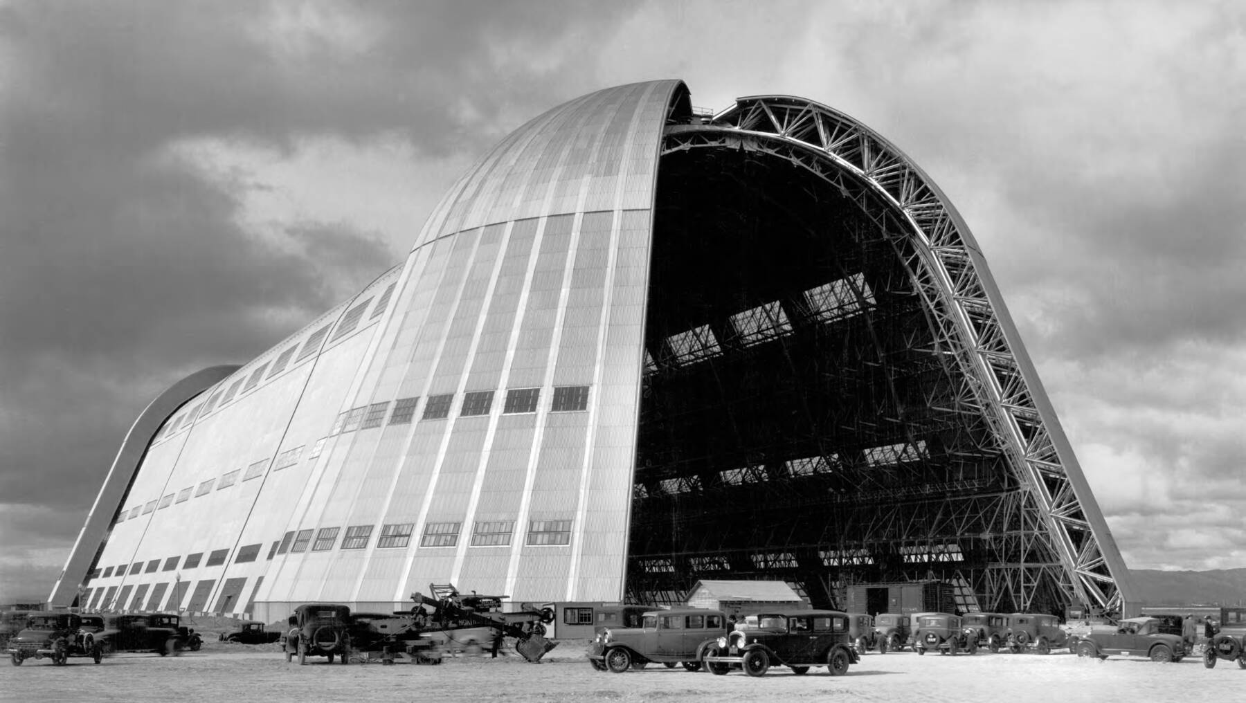 Hangar One is an iconic landmark that is significant to aviation historians and the local community. Moffett Federal Airfield was originally Naval Air Station (NAS) Sunnyvale, and Hangar One was developed to house the USS Macon and serve as the West Coast operations of the Navy’s LTA dirigible program. In 1930 when this site was selected as the new naval station, nearby schools and banks were closed and a celebratory parade of cars wound through the peninsula. The land was purchased with funds raised by enthusiastic local citizens and civic leaders excited at the prospect of a naval airfield in the area and it was then sold to the Navy for $1. When completed, the enormous scale of Hangar One – approximately 1,100 feet long by 300 feet wide by 200 feet high at its crown – dominated the landscape of the then mostly rural landscape.