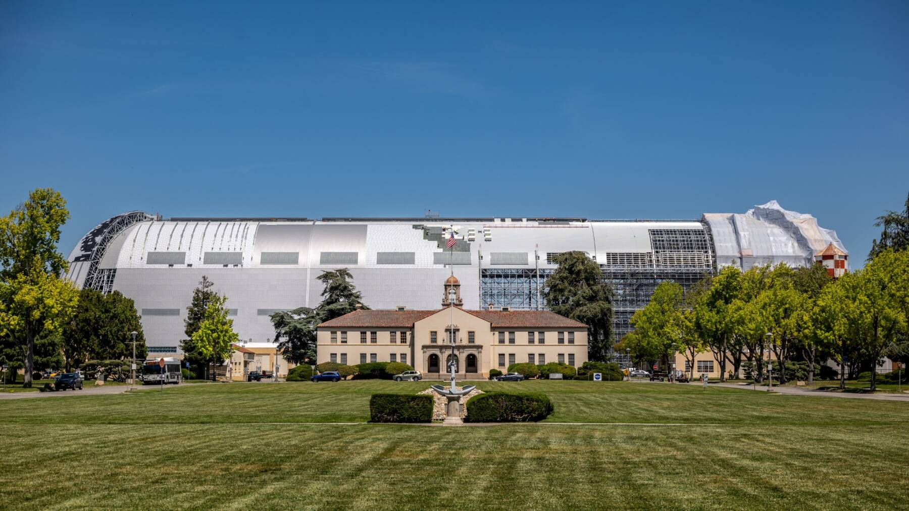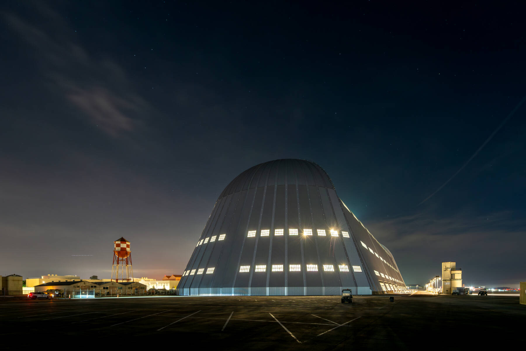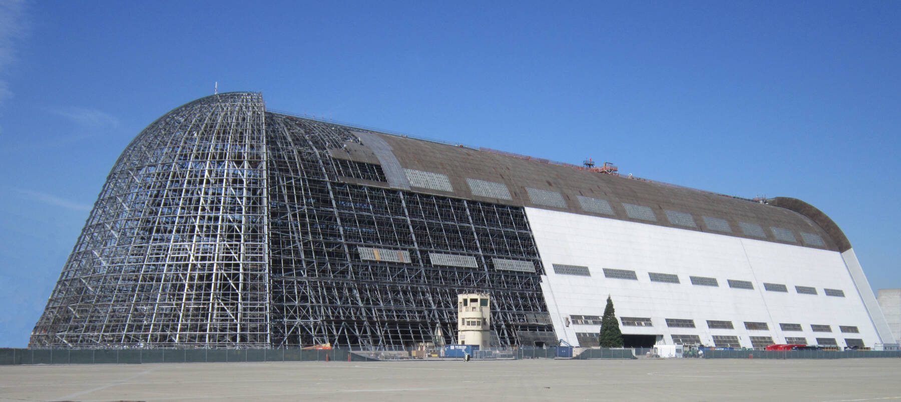 Hangar One was constructed between 1931-33 to house the USS Macon as part of the U.S. Navy’s dirigible program. Hangar One’s design and construction is one of the greatest engineering feats of the twentieth century, and it remains one of the largest clear-span volumes in the U.S. In the 1990s, the base was decommissioned and subsequent testing revealed hazardous materials that eventually required the Hangar to be stripped to its steel skeleton to mitigate contamination.