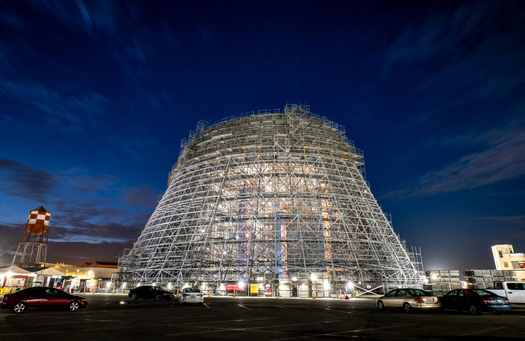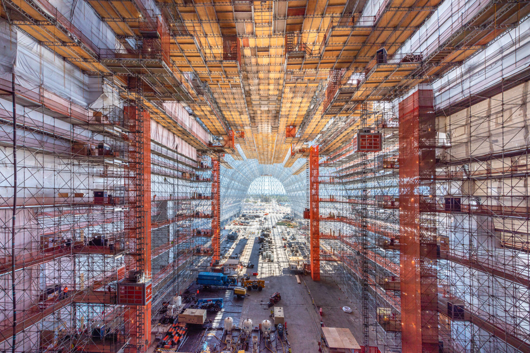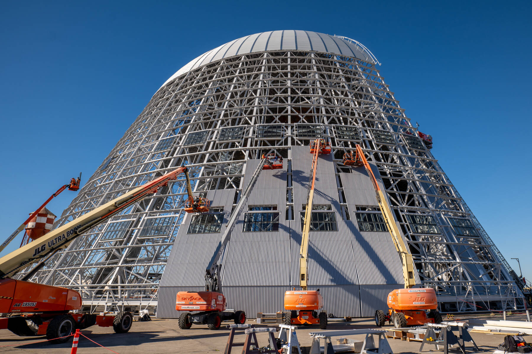 Hangar One was constructed between 1931-33 to house the USS Macon as part of the U.S. Navy’s dirigible program. Hangar One’s design and construction is one of the greatest engineering feats of the twentieth century, and it remains one of the largest clear-span volumes in the U.S. In the 1990s, the base was decommissioned and subsequent testing revealed hazardous materials that eventually required the Hangar to be stripped to its steel skeleton to mitigate contamination.