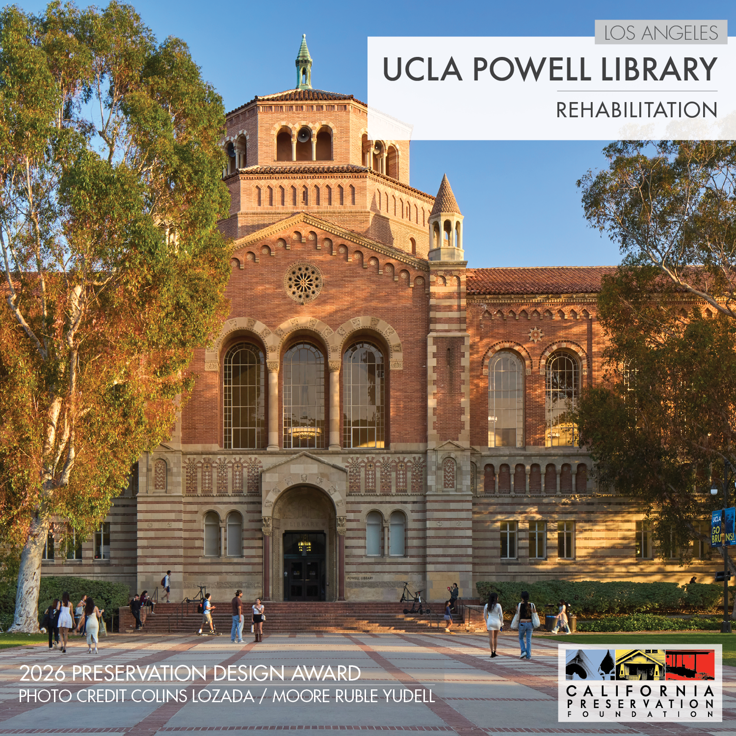 UCLA Powell Library is a winner for the 2026 Preservation Design Award in the category of Rehabilitation. Award recipients are selected by a jury of top professionals in the fields of architecture, engineering, planning, and history, as well as renowned architecture critics and journalists. Tickets and sponsorship options are available at californiapreservation.org/programs/awards/.