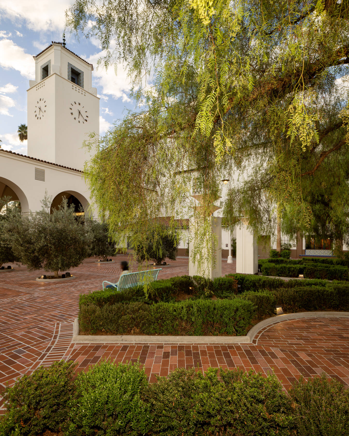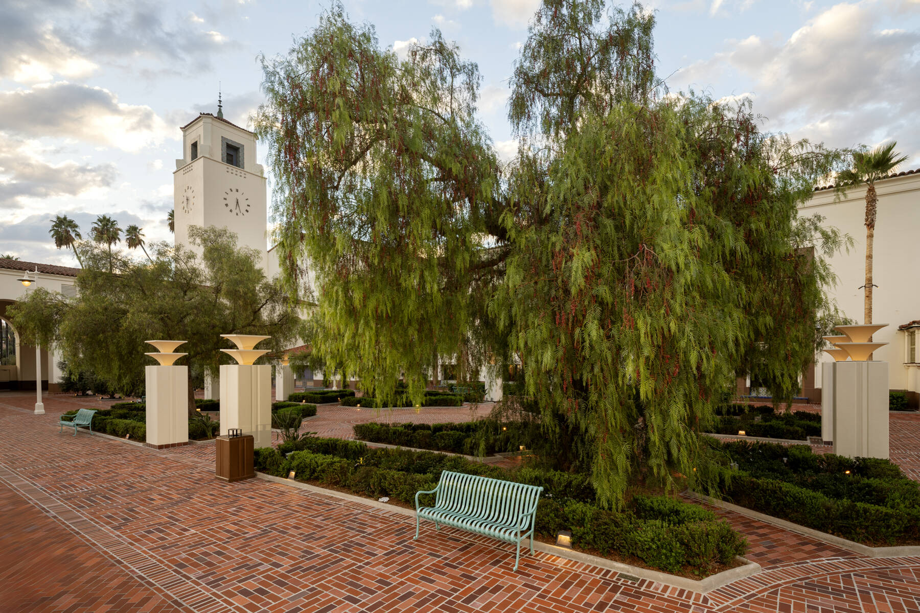 The South Patio was originally designed as a central circulation space, divided into four quadrants by brick paths aligned on the north-south and east-west axes. Accessible from the historic reception room (now the Passenger Concourse), Waiting Room, Forecourt, and arcades, the patio was envisioned as a seamless extension of the Station’s interior spaces. With this restoration the South Patio can once again be experienced by passengers and visitors as was historically intended; an open, welcoming space that celebrates Union Station’s legacy.