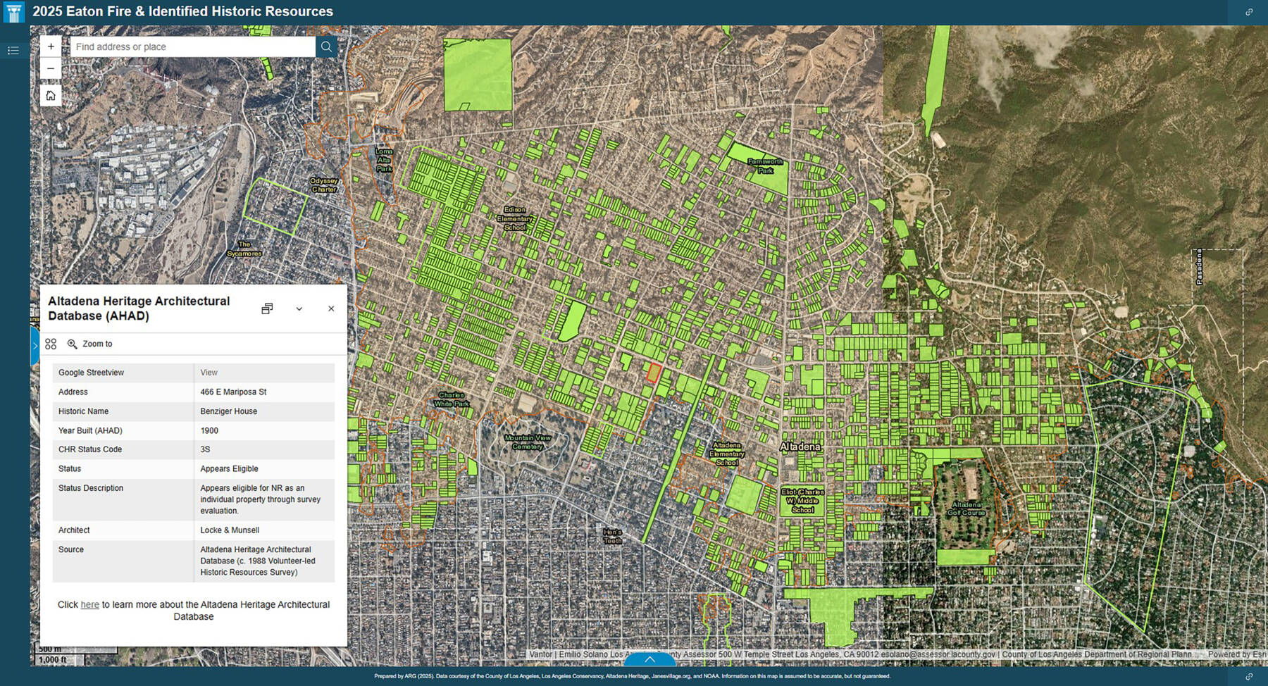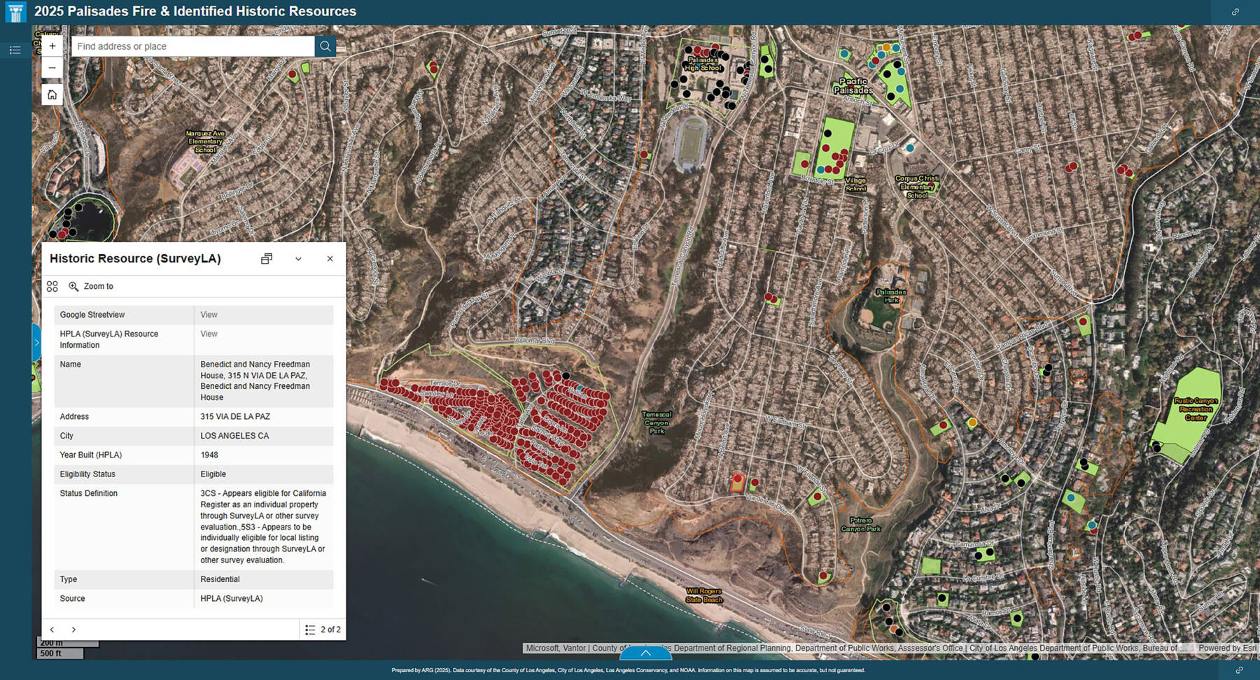 In documenting wildfire impacts to historic resources, it became clear that the Palisades and Eaton fire areas presented distinct baseline conditions for heritage documentation. These differences were due in part to uneven levels of prior documentation. The rapid deployment of GIS-based documentation allowed the project team to visualize, categorize, and interpret loss with precision, offering a replicable model for areas where heritage data infrastructure is well developed. The initiative also relied on the community-driven identification of sites of significance, informed through collaboration with local agencies, preservation advocacy organizations, and community members who contributed historical knowledge, archival records, and locally maintained datasets. This collective effort proved to be a meaningful and engaged form of documentation, serving as a repository for collective memory during the earliest waves of shared grief and resilience.