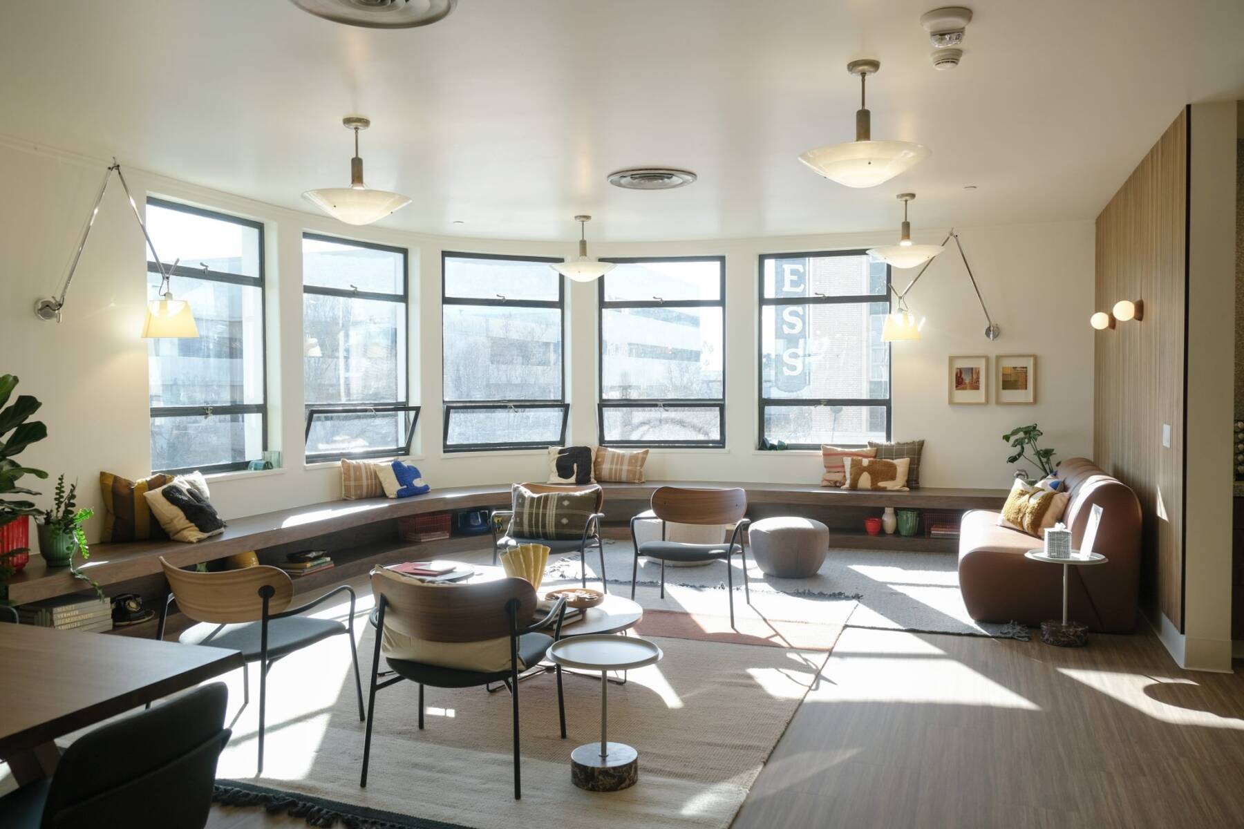 Built in 1950, the Woolworth Building exemplifies Late Moderne commercial architecture with distinctive curved corner, ribbon windows, and original terrazzo. The comprehensive rehabilitation preserved character-defining features including the complete luncheonette with L-shaped counter, fixed seating, and decorative tilework. The project reimagined the basement as a multi-purpose venue supporting music, educational events, dance, theater, and private functions, maintained the historic first-floor lunch counter alongside a new music conservatory/school (future opening) and local coffee cart, converted the second floor to modern offices, and adapted the third floor for additional office storage. Exterior restoration included cleaning concrete facades, re-glazing original steel-sash windows, and reinstating “WOOLWORTH’S” signage. Interior work revealed and restored original volumes while integrating modern systems. The project demonstrates how historic commercial buildings can adapt to contemporary needs while maintaining architectural integrity.